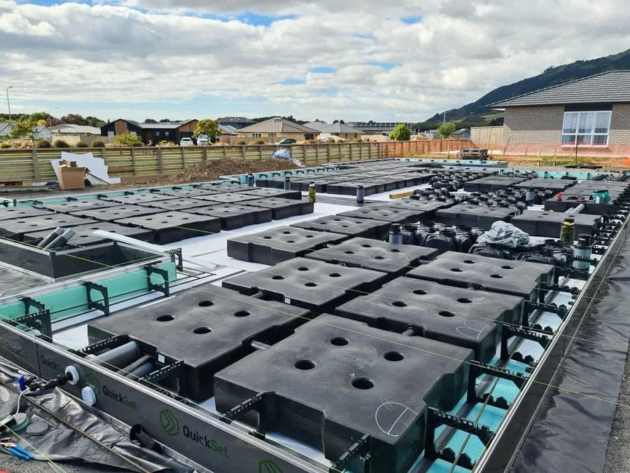 Aquacomb® systems are designed to fit into any type of slab construction and are especially suitable for waffle pod slab construction for housing.