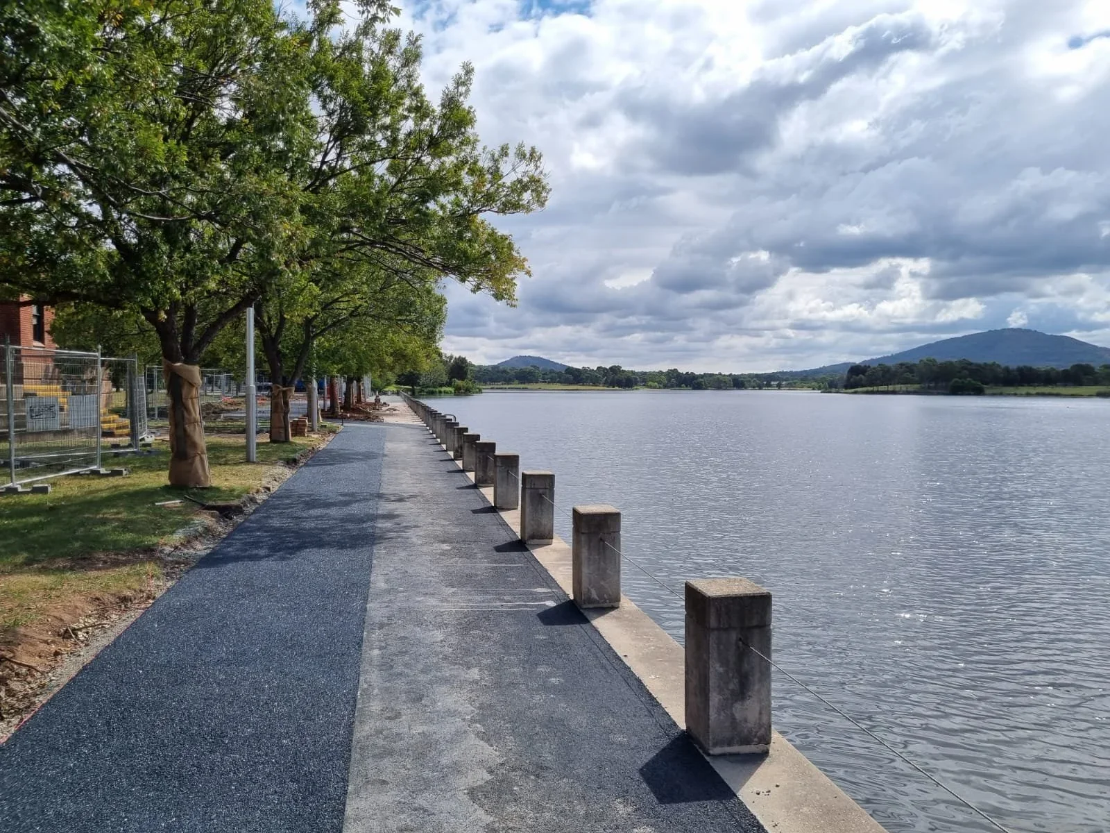 Pictured above is Permeable pavement installation around Lake Tuggeranong. You can see the Tree Protection Zone along the foreshore.