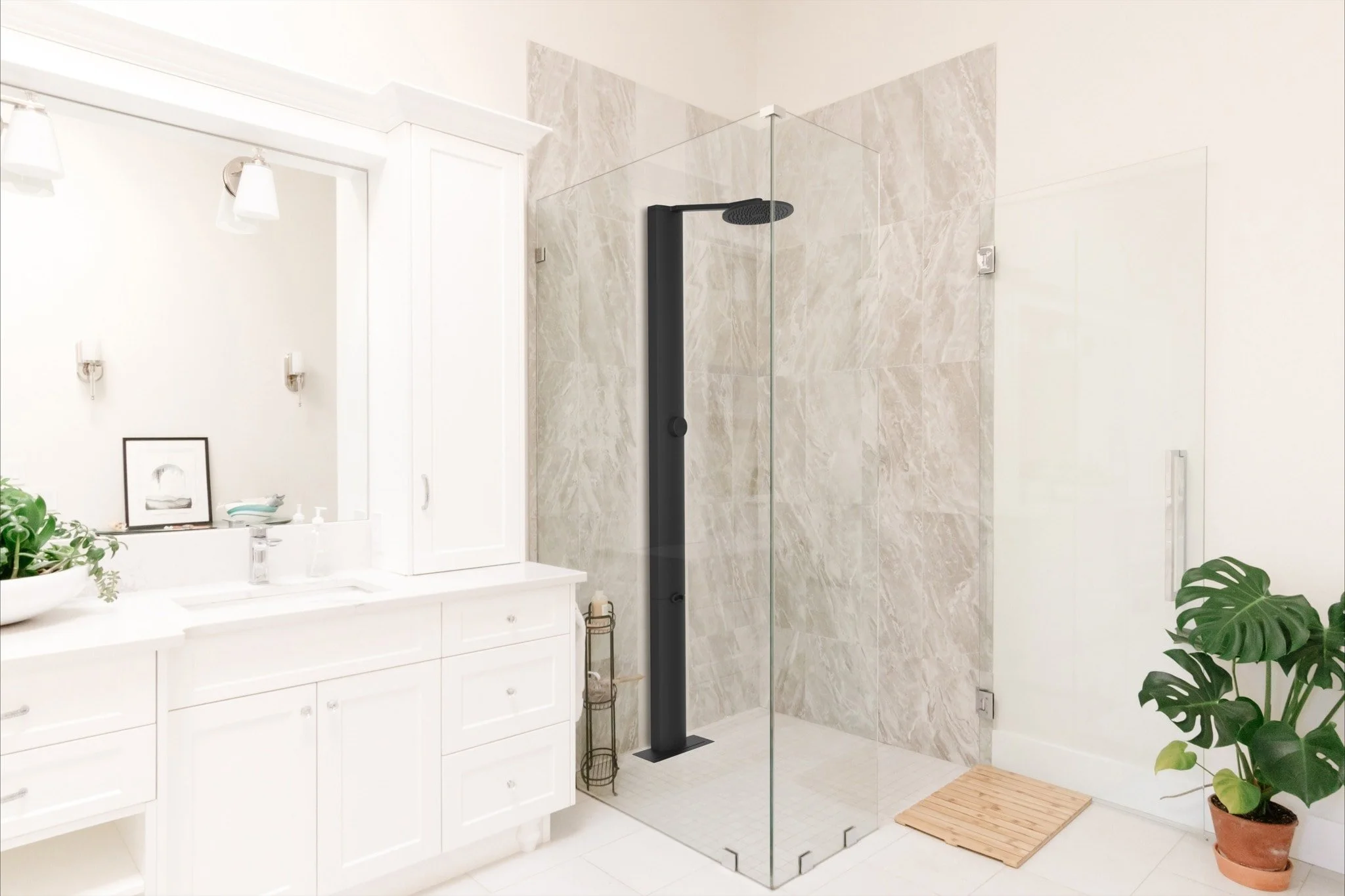 The RainStick system starts with fresh grid-supplied water, just like your current shower. The difference? RainStick captures, circulates, and cleans the water in real time, so it doesn’t go to waste.